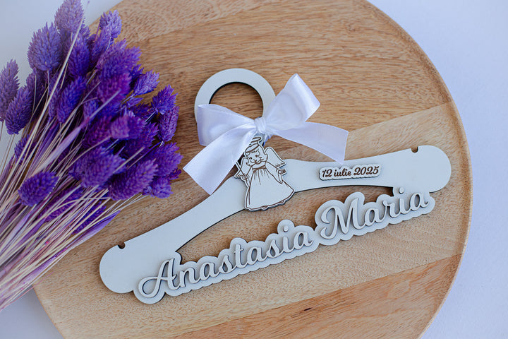 Pentru că fiecare detaliu contează, iar acest umeraș personalizat pentru botez sau evenimente speciale este realizat cu pasiune și atenție la detalii, transformându-l într-un accesoriu deosebit pentru micuțul tău sau un cadou de neuitat.