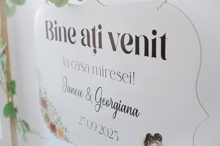 Pentru că fiecare colț din ziua nunții trebuie să spună o poveste. Această plăcuță de întâmpinare personalizată este gândită să creeze un moment memorabil pentru cei dragi, cu un mesaj cald, un design armonios și un plus de rafinament.