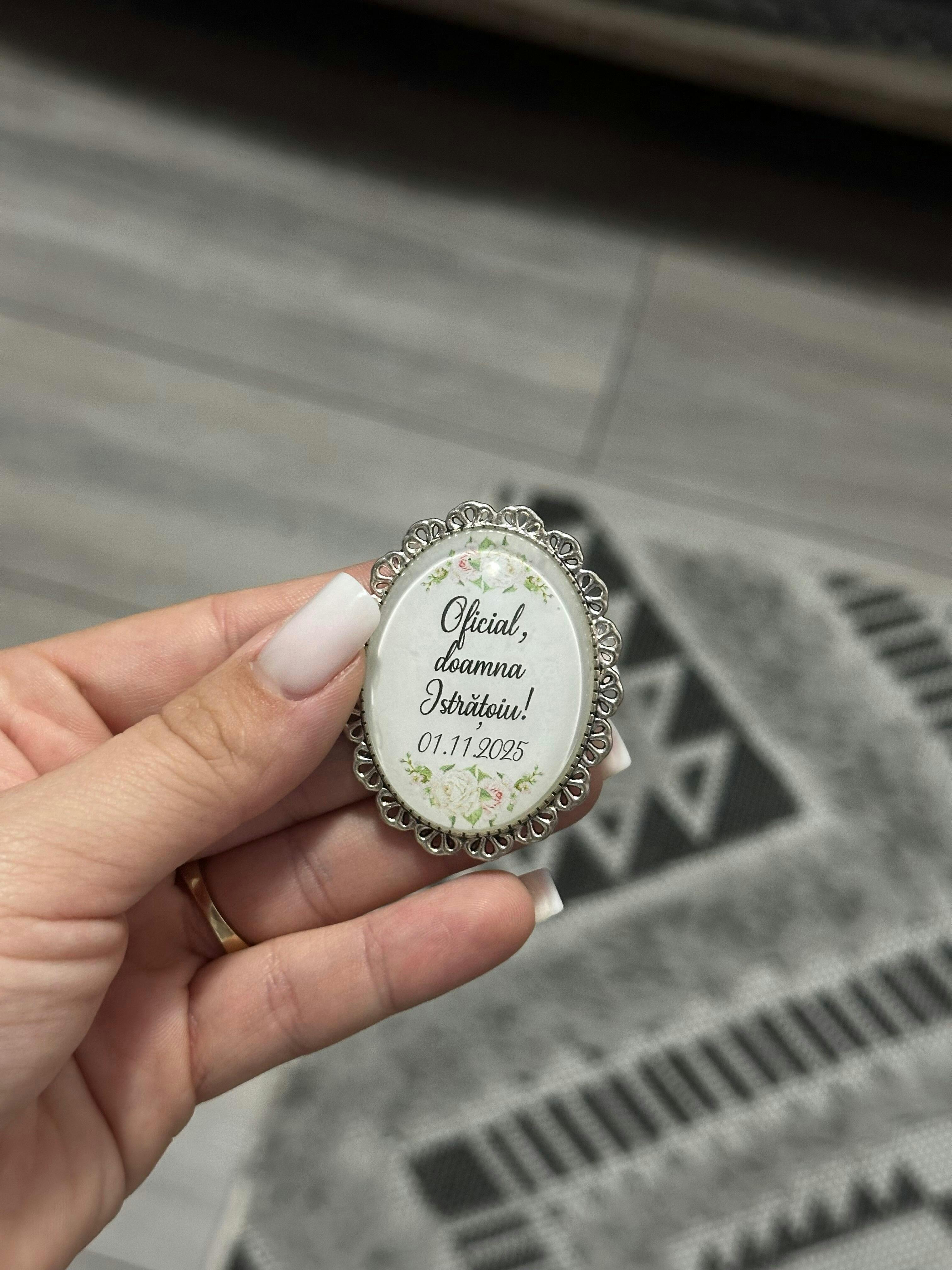 💍 Broșă personalizată pentru buchet – Detaliul elegant care adaugă un plus de rafinament