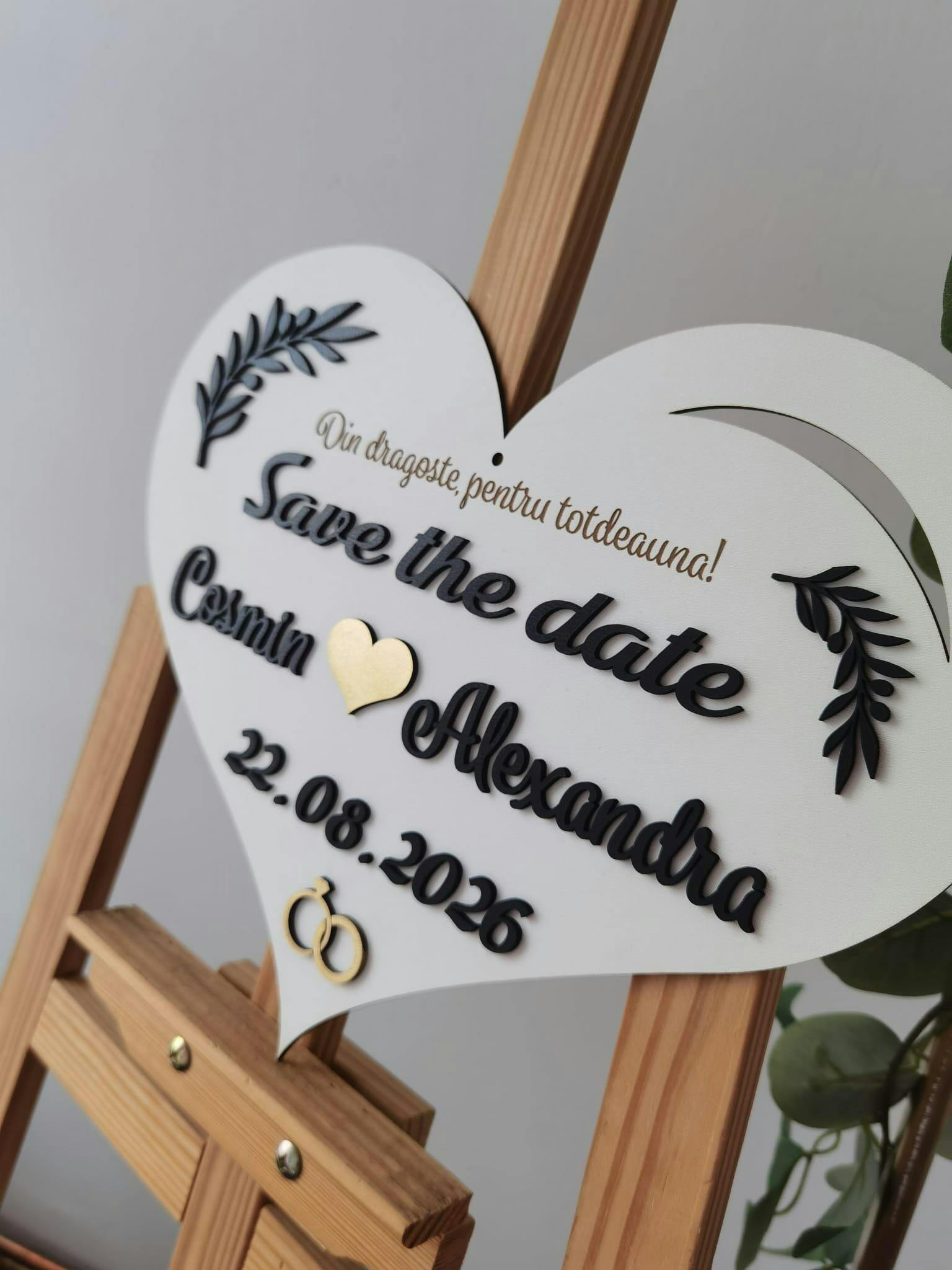 Inimă Save the Date personalizată, ideală pentru anunțul oficial al nunții
