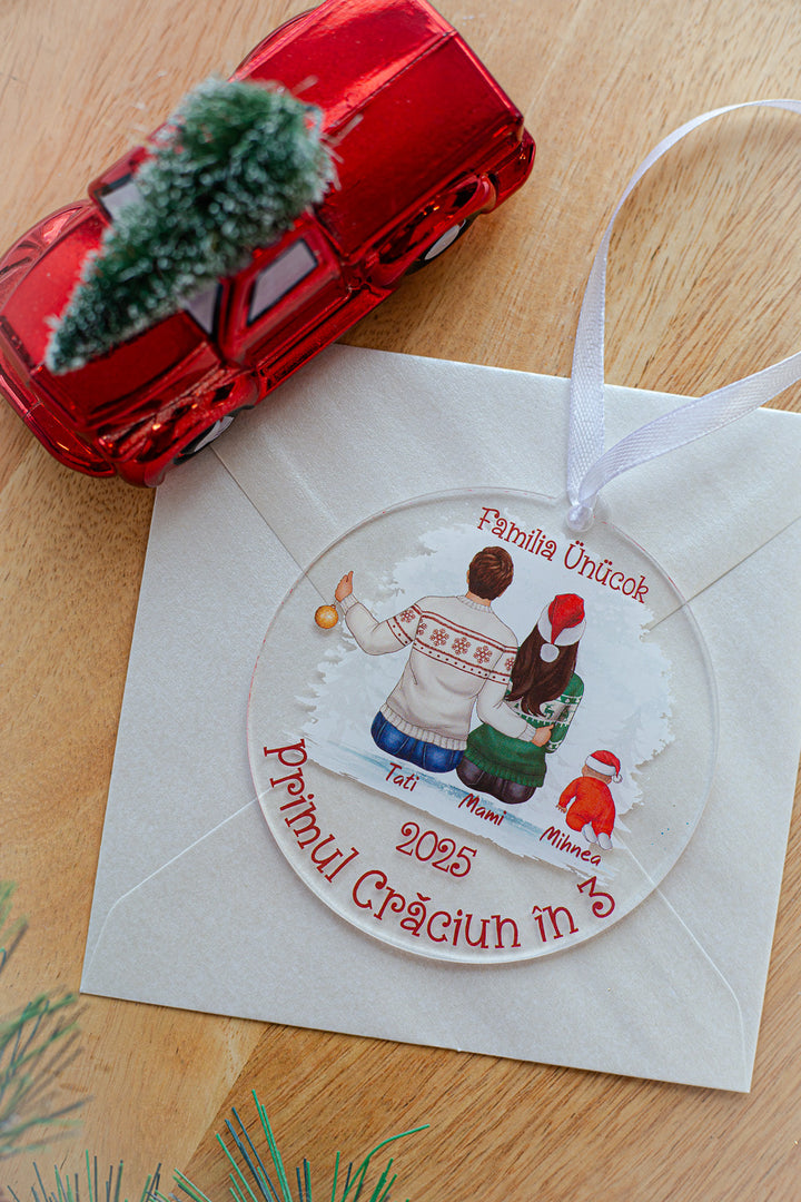 🎄Glob personalizat din plexiglass alb sau transpaent – Familia ta, intr-o decoratiune unica