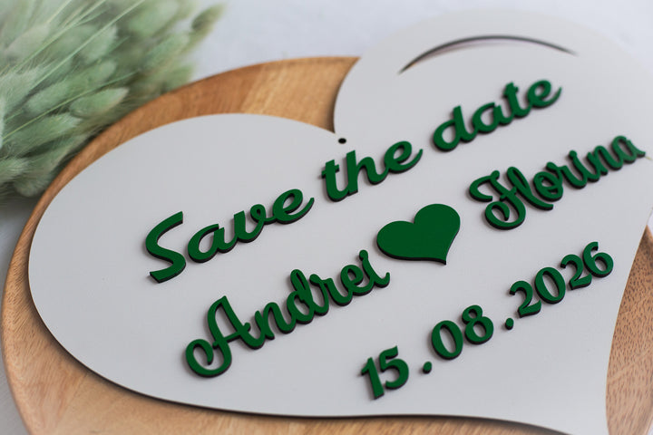 Inimă Save the Date personalizată, ideală pentru anunțul oficial al nunții