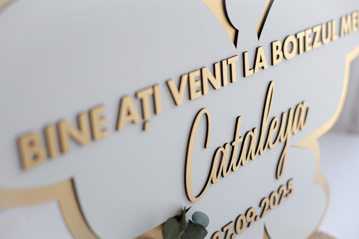 Comandă acum și creează un decor magic pentru botezul copilului tău cu un panou personalizat adorabil și elegant!