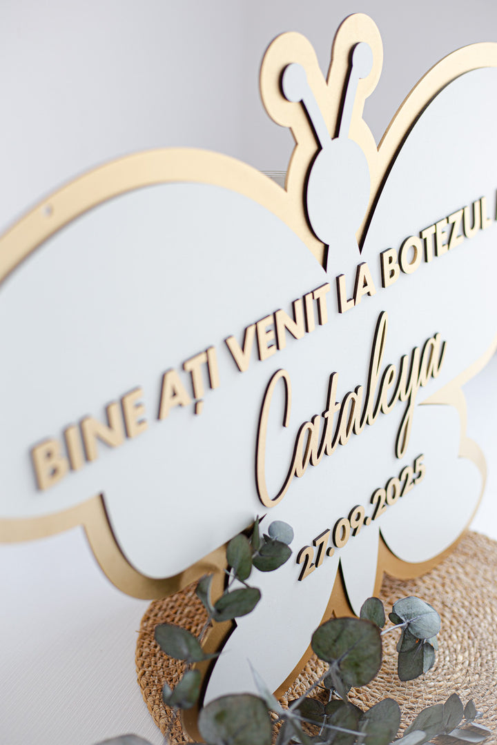 🦋 Panou personalizat în formă de fluture – Un decor adorabil pentru botezul micuțului