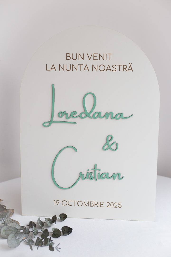 💍 Placă de bun venit personalizată – Eleganță încă de la primul pas