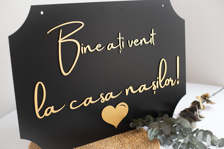 💍Placuta personalizata de bun venit – "La casa nasilor" – Eleganta si impact vizual