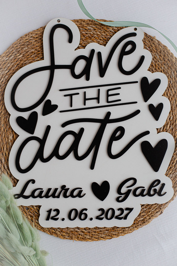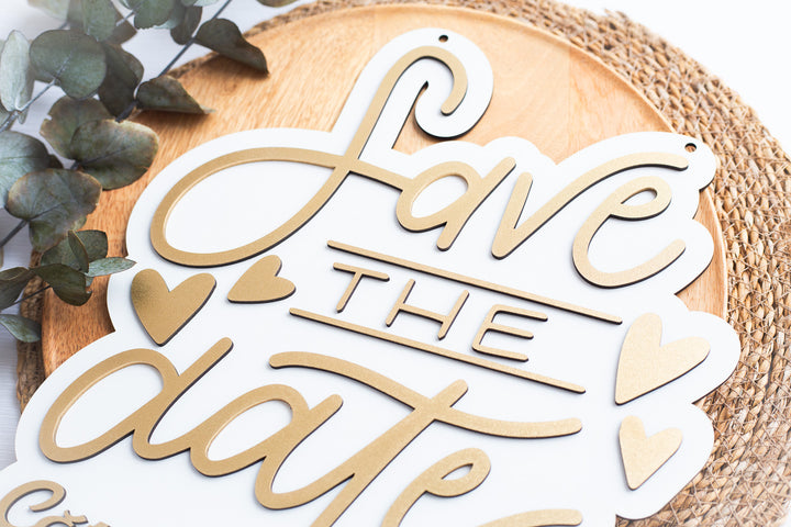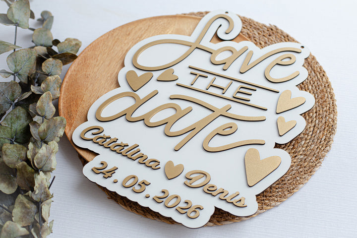 Placută Save the Date personalizată, ideală pentru anunțul oficial al nunții.