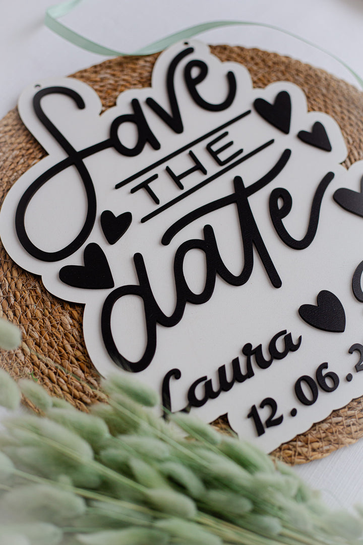 Transformă anunțul nunții într-un moment memorabil cu această placută Save the Date personalizată, creată special pentru ședințele foto. Realizată din lemn de calitate, această placă decorativă este personalizată cu numele mirilor, data evenimentului și elemente în relief, adăugând un plus de eleganță și unicitate. Perfectă pentru fotografii de cuplu și anunțuri creative, această decorațiune Save the Date va atrage toate privirile și va fi un prim detaliu de poveste al nunții voastre.