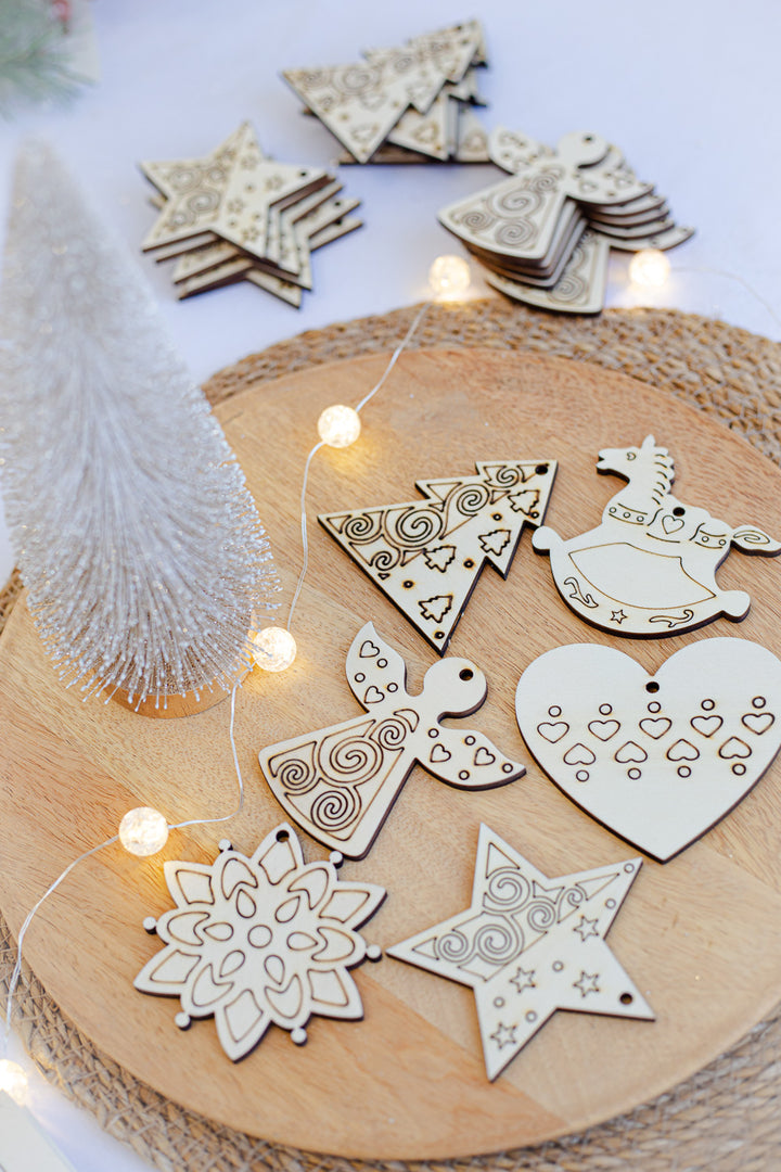 Transforma pregatirile de sarbatori intr-un moment special alaturi de cei mici cu acest set de globuri din lemn, gata de colorat! Fiecare decoratiune este taiata si gravata cu grija in forme variate – braduti, stelute, ingerasi, inimioare si altele – oferind copiilor ocazia sa-si foloseasca creativitatea pentru a le personaliza asa cum doresc.