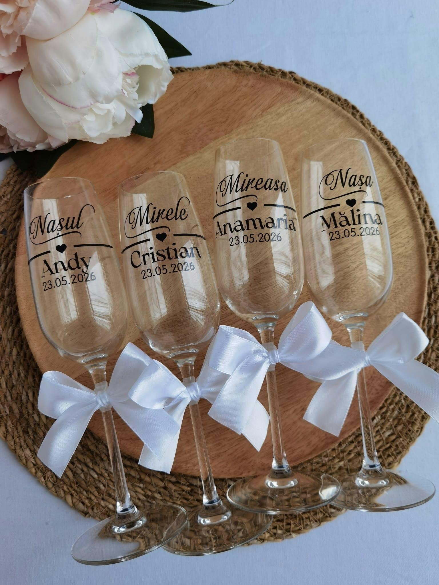💍 Set pahare de șampanie personalizate – Eleganță și rafinament pentru momentele speciale