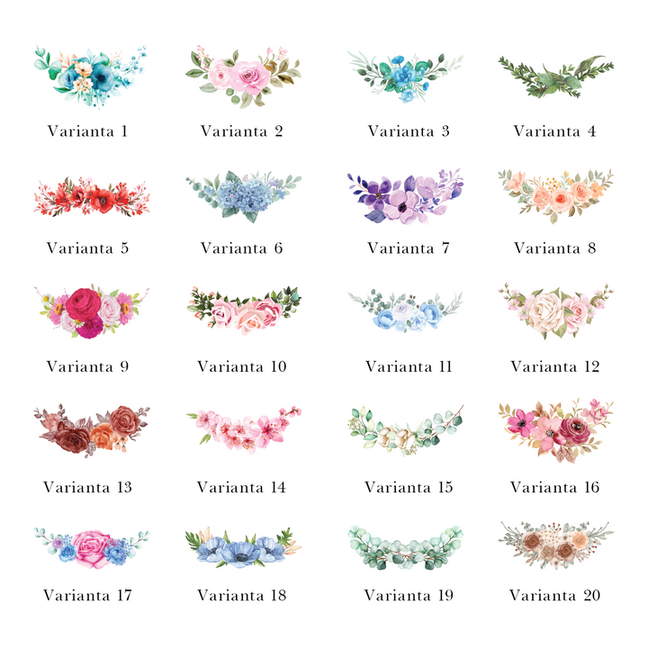 Personalizare completă – numele mirilor, data nunții, mesaje speciale și culori personalizate.